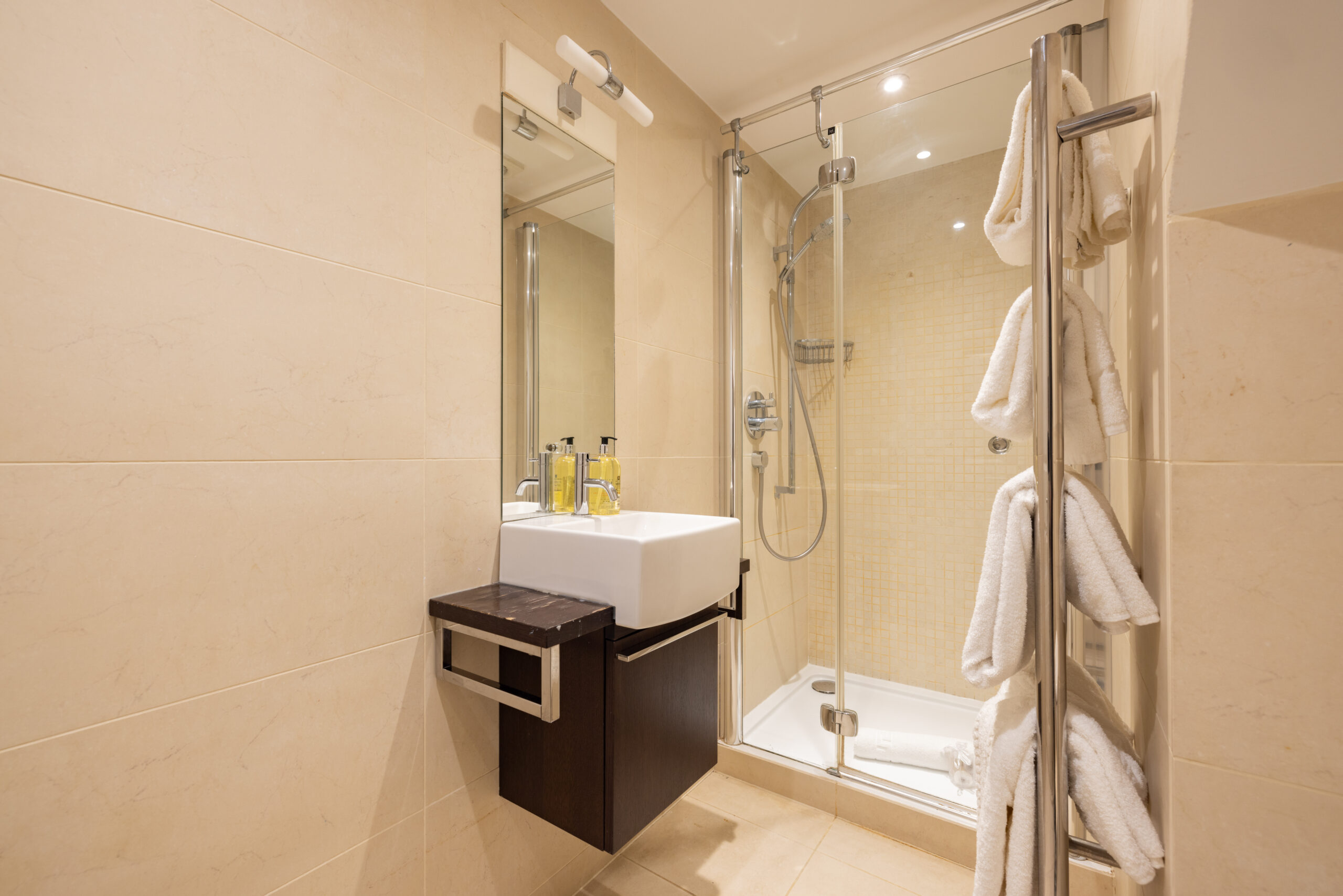 The apartment features two well-appointed bedrooms, including a principal bedroom with an en-suite bathroom, complemented by a second modern bathroom. Thoughtfully designed interiors and excellent natural light enhance the sense of space throughout, creating a welcoming and sophisticated home.